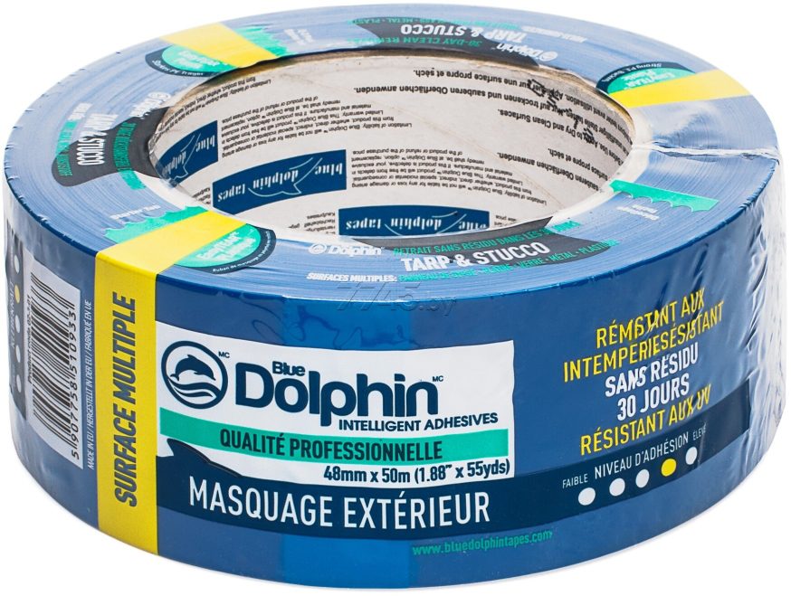 Лента малярная ПВХ BLUE DOLPHIN Tarp & Stucco 48 мм 25 м синяя (02-4-01-EN BDN) применяется на поверхностях из винила, пластика, алюминия, штукатурке, при лакировке древесины и т.д. Удаляется без следов после 30-ти дней использования. ПВХ основа. Устойчива к УФ-излучениям и повышенной влажности.