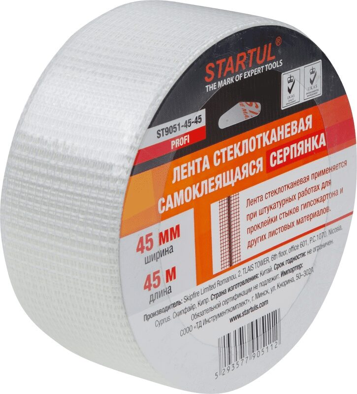 Лента стеклотканевая серпянка самоклеющаяся STARTUL Profi применяется при штукатурных работах для проклейки стыков гипсокартона и других листовых материалов.