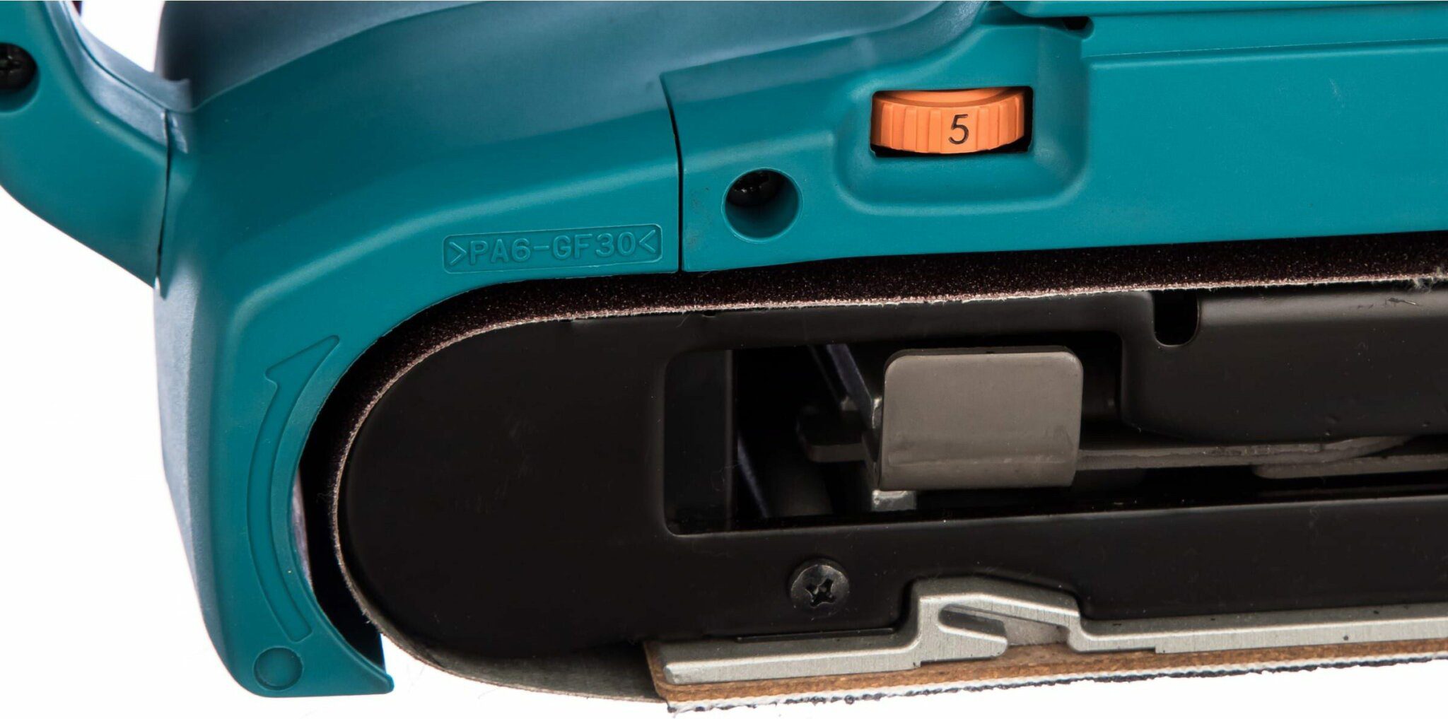 Ленточная шлифмашина MAKITA 9903 – это профессиональный инструмент, предназначенный для шлифовки различных плоских поверхностей. Модель 9903 обладает высокой мощностью – 1010 Вт. В качестве рабочего инструмента устанавливается шлифовальная лента 553х76 мм. Кнопка пуска расположена на рукоятке и имеет фиксатор, блокирующий кнопку в нажатом положении. Удобство использования шлифмашины обусловлено легкостью обслуживания. Для замены угольных щёток достаточно открутить шлицевой отвёрткой заглушки на корпусе электродвигателя. Автоматическая система регулировки положения ленты, мощный пылесборник и низкий уровень шума так же делают работу комфортной. Уникальная конструкция позволяет шлифовать пол у края стены.