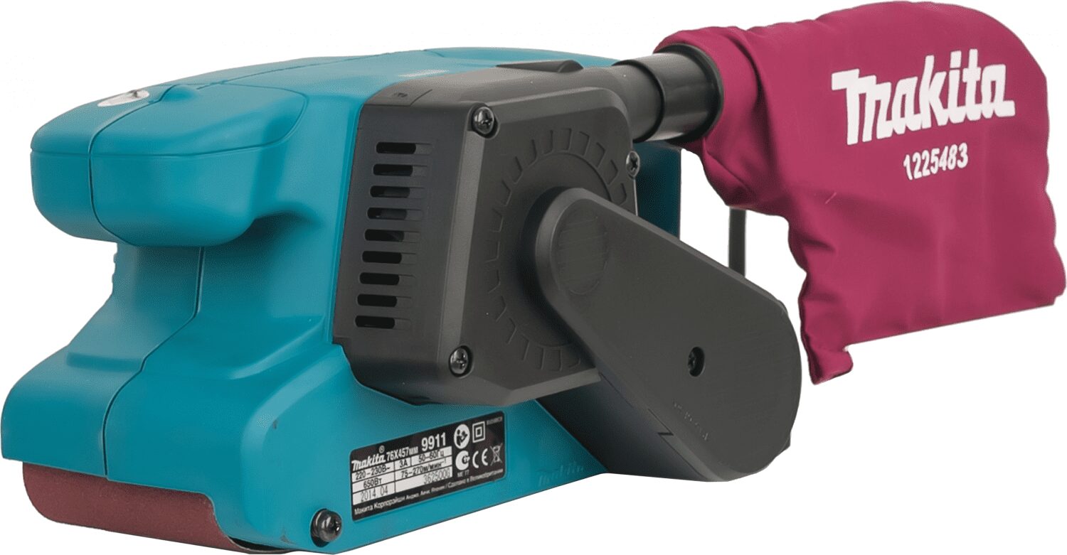 Шлифмашина ленточная MAKITA 9911 (9911) профессиональный инструмент, предназначенный для шлифования и выравнивания различных поверхностей. Применяется в условиях строительной и производственной площадки. Работа становится легче благодаря компактным размерам и хорошей балансировке. Уникальная конструкция позволяет шлифовать стену у края угла. Стационарное использование при установке кронштейна. Низкий уровень шума при работе (85дБ).