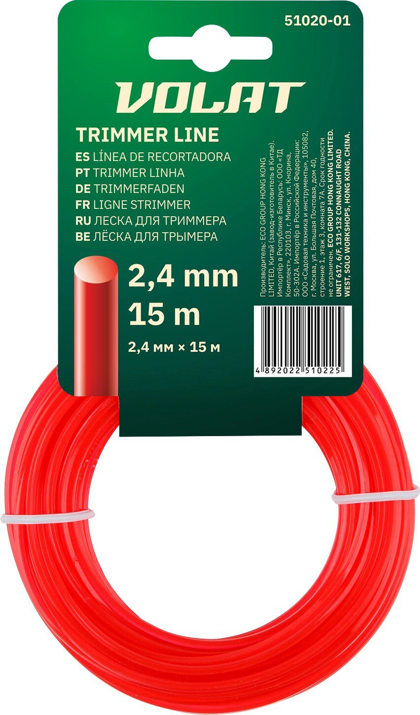 Леска для триммера диаметром 2,4 мм используется на электрических триммерах и мотокосах с объемом двигателя до 22 см3. Предназначена для обработки участков с обычной, не жесткой травой.