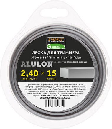 Леска для триммера диаметром 2,4 мм используется на мотокосах с объемом двигателя до 35 см3. Предназначена для обработки участков с обычной, не жесткой травой. Острые режущие грани обеспечивают чистый рез и высокую производительность. Содержит алюминиевые частицы.
