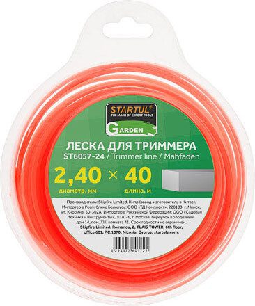Леска для триммера диаметром 2,4 мм используется на мотокосах с объемом двигателя до 35 см3. Предназначена для обработки участков с обычной, не жесткой травой. Острые режущие грани обеспечивают чистый рез и высокую производительность.