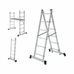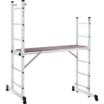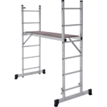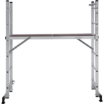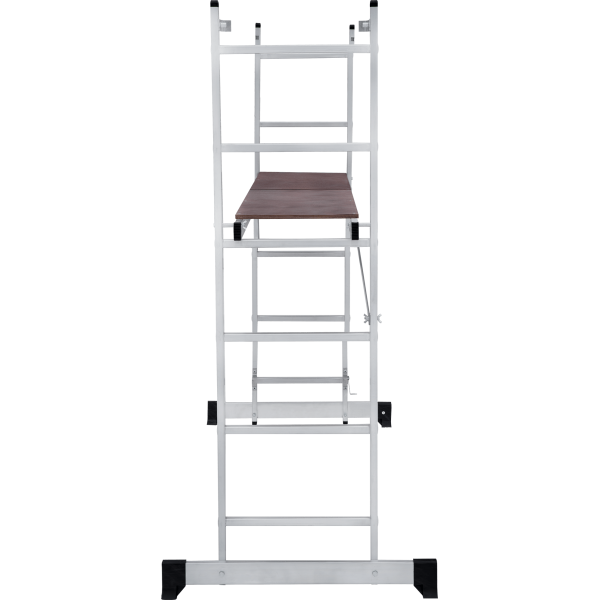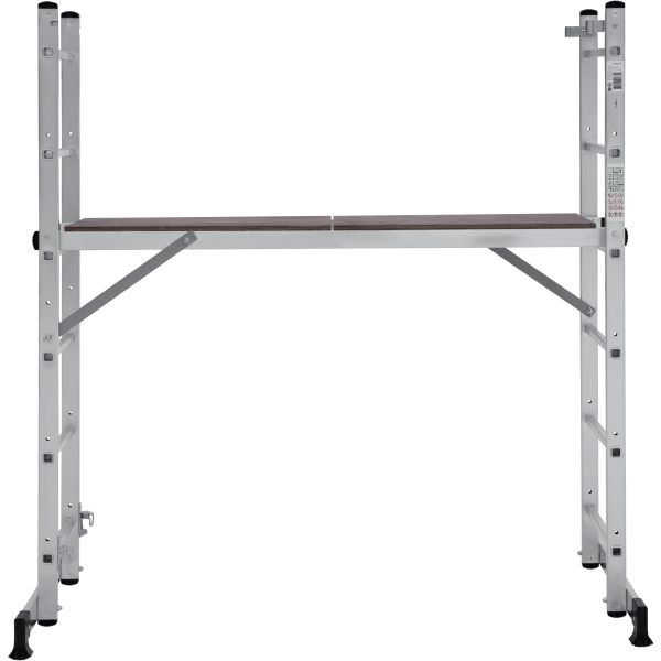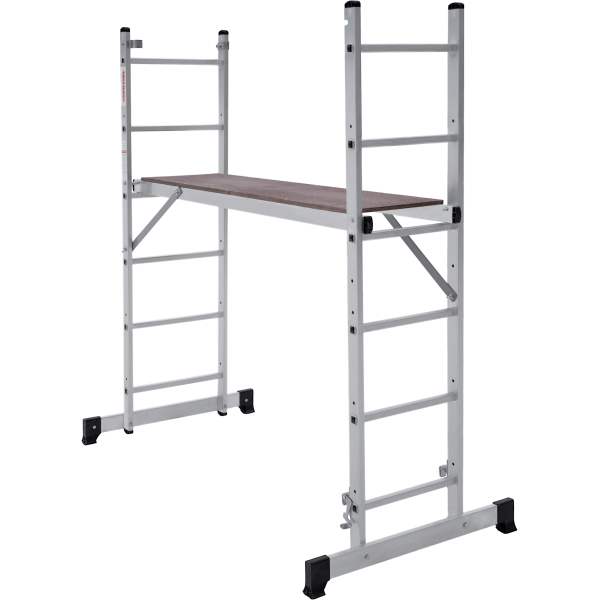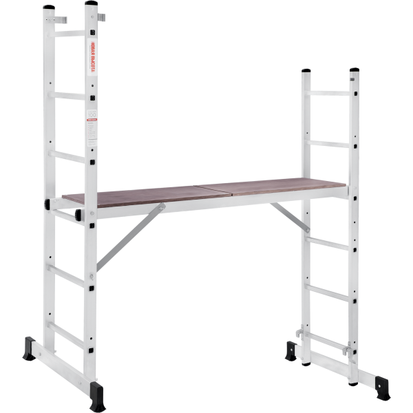 Вышка-тура строительная площадка 0,34х1,38 м НОВАЯ ВЫСОТА NV1415 (1415206) для бытового использования при проведении внутренних и наружных работ. Высокая прочность и надёжность при небольшом весе изделия. Возможность установки на лестничных маршах. Легко устанавливается и обеспечивает высокий уровень комфорта. Стойки и перекладины из экструдированного алюминиевого профиля. Помост из влагостойкой фанеры с возможностью установки на разных уровнях. Высота площадки 0,79 м. Многократкая развальцовка в соединении ступеней со стойками обеспечивает высокую прочность и долговечность. Рифлёная поверхность ступеней для безопасного подъёма и спуска. Шаг ступеней 260 мм. Алюминиевые направляющие кронштейны надёжно удерживают выдвижную секцию во всех рабочих положениях. Зацепы с автоматическим фиксатором. Широкие траверсы для максимальной устойчивости. Опорные наконечники из прочного пластика для устойчивого положения. Компактность при хранении и транспортировке. Практичность и внимание к каждой детали гарантируют безопасность работы на любой высоте.