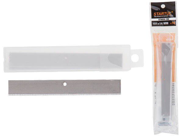 Лезвие для скребка STARTUL Master 101x14x0,4 мм 10 штук (ST9059-100) – это набор из высокопрочных стальных лезвий, которые разработаны специально для использования в качестве сменных рабочих элементов в скребках. Применяются для удаления загрязнений со стекла, керамики, кафеля. Не оставляют царапин.