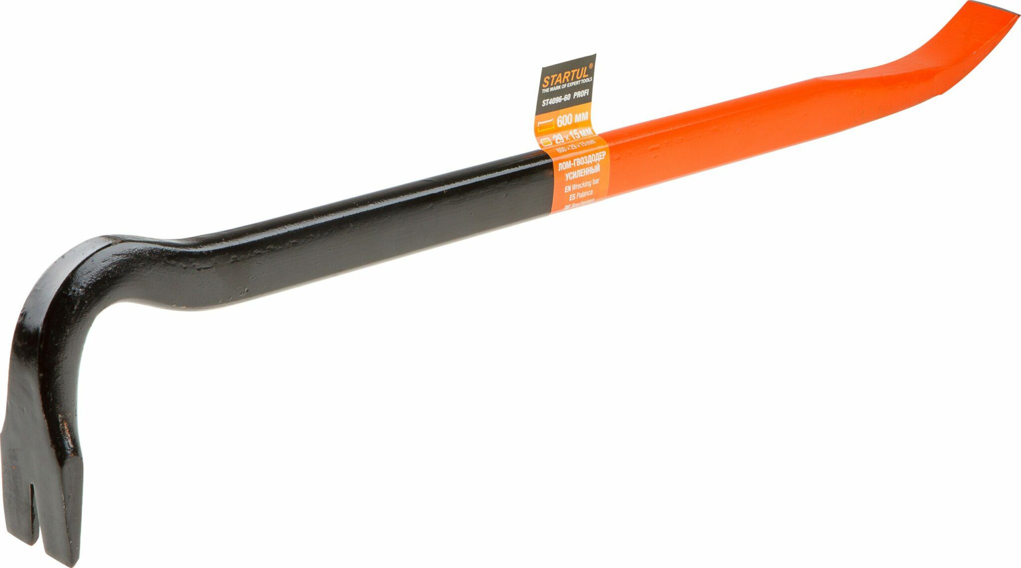 Лом-гвоздодер 29х600 мм STARTUL PROFI (ST4096-60) предназначен для извлечения гвоздей, забитых в дерево и другие материалы, также используется при проведении демонтажных работ. Тип профиля: прямоугольно-овальный. Материал: углеродистая сталь 65 Mn. Особенность: демонтажная сторона.