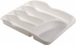 Лоток для столовых приборов DRINA (10073) незаменимый аксессуар для кухни. Компактный и вместительный лоток не занимает много места, прекрасно вмещается в стандартную кухонную полку, имеет пять различных отделений. Обладает достаточной вместительностью и устойчивостью.
