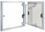 Люк под плитку ALKRAFT Инженер-2 используется для обеспечения легкого доступа к инженерным коммуникациям (краны, фильтры, счетчики), устанавливается в стены с последующей отделкой объемными облицовочными материалами: плитка, керамогранит, мозаика, искусственный камень, стекло, зеркало и т.п.. Люк представляет собой очень прочную конструкцию из алюминиевой рамы со стальной петлей. Дверца также изготавливается из алюминия и заполненяется гипсоволокнистым листом толщиной 10мм. Петля окрашена с помощью порошковой окраски, что обеспечивает надежную защиту от ржавчины. Дверца люка регулируется по вертикали. Петля дверцы люка имеет повышенную грузоподъемность и может быть облицована тяжелыми отделочными материалами, такими, как керамогранит и натуральный камень. Люк снабжен замком, позволяющими открывать и закрывать дверцу люка нажатием. Не требуется дополнительных ручек, присосок, замков и т.п. Размер дверцы люка по габаритам совпадает с размером рамы, что позволяет без проблем облицовать её и плиткой и мозаикой.
