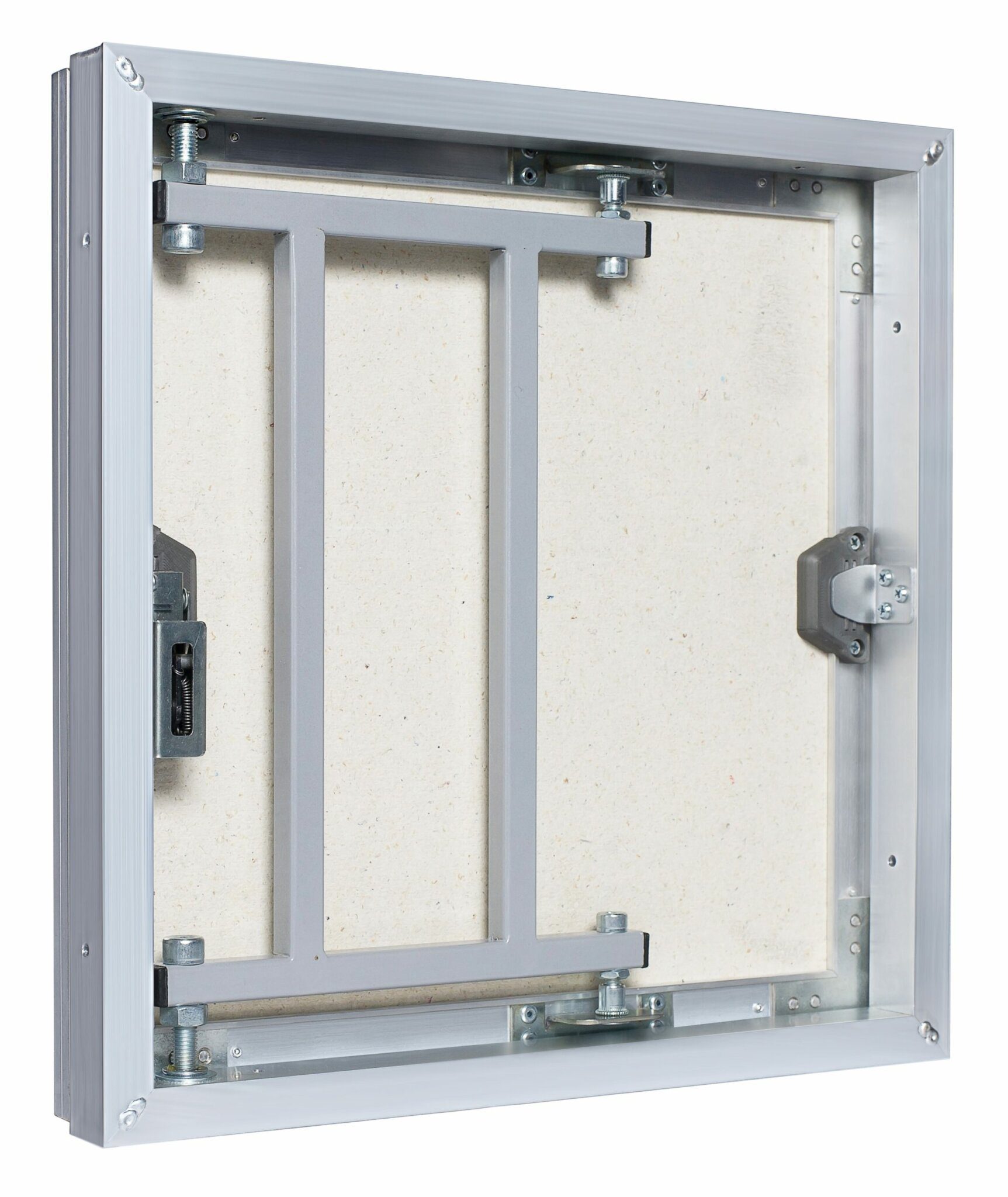 Люк под плитку ALKRAFT Инженер-2 60х90 используется для обеспечения легкого доступа к инженерным коммуникациям (краны, фильтры, счетчики), устанавливается в стены с последующей отделкой объемными облицовочными материалами: плитка, керамогранит, мозаика, искусственный камень, стекло, зеркало и т.п.. Люк представляет собой очень прочную конструкцию из алюминиевой рамы со стальной петлей. Дверца также изготавливается из алюминия и заполненяется гипсоволокнистым листом толщиной 10мм. Петля окрашена с помощью порошковой окраски, что обеспечивает надежную защиту от ржавчины. Дверца люка регулируется по вертикали. Петля дверцы люка имеет повышенную грузоподъемность и может быть облицована тяжелыми отделочными материалами, такими, как керамогранит и натуральный камень. Люк снабжен замком, позволяющими открывать и закрывать дверцу люка нажатием. Не требуется дополнительных ручек, присосок, замков и т.п. Размер дверцы люка по габаритам совпадает с размером рамы, что позволяет без проблем облицовать её и плиткой и мозаикой.