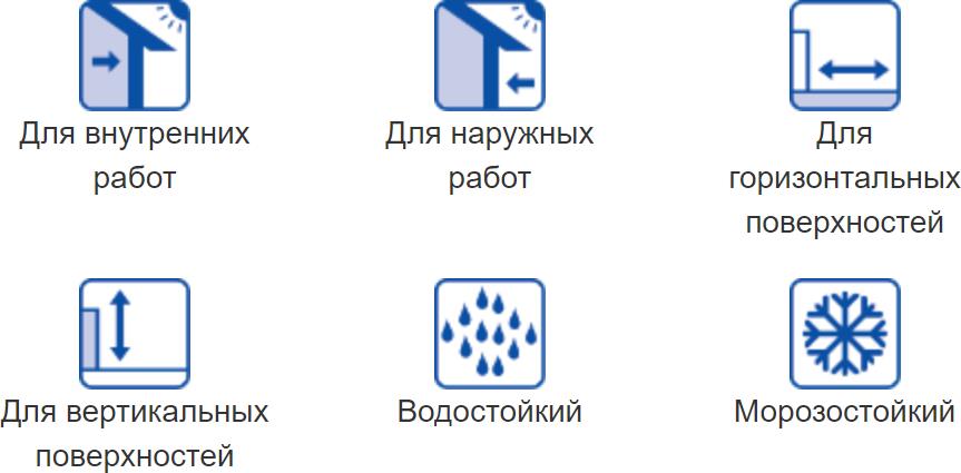 | Наружное применение, Внутреннее применение, Теплый пол, Для влажных помещений, Бассейн, Камины / печи, Полы, Стены | |