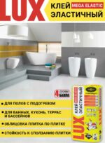 Клей для плитки ТАЙФУН Люкс эластичный 25 кг идеально подходит для покрытий, подвергающихся деформациям. Благодаря своей эластичности компенсирует напряжения: термические – на фасадах, балконах, террасах, системах напольного и настенного отопления; механические – на гипсокартонных и гипсоволокнистых плитах, на эластичной гидроизоляции и др.Виды основания: цементные, цементно-известковые, гипсовые штукатурки и стяжки, неоштукатуренные стены из кирпича, блоков из ячеистого бетона.Виды приклеиваемых плиток: ГРЕС и керамические плитки размером более 0,16 м² (40 х 40 см), мозаика, искусственный или натуральный камень размером более 0,16 м2 (40 х 40 см).