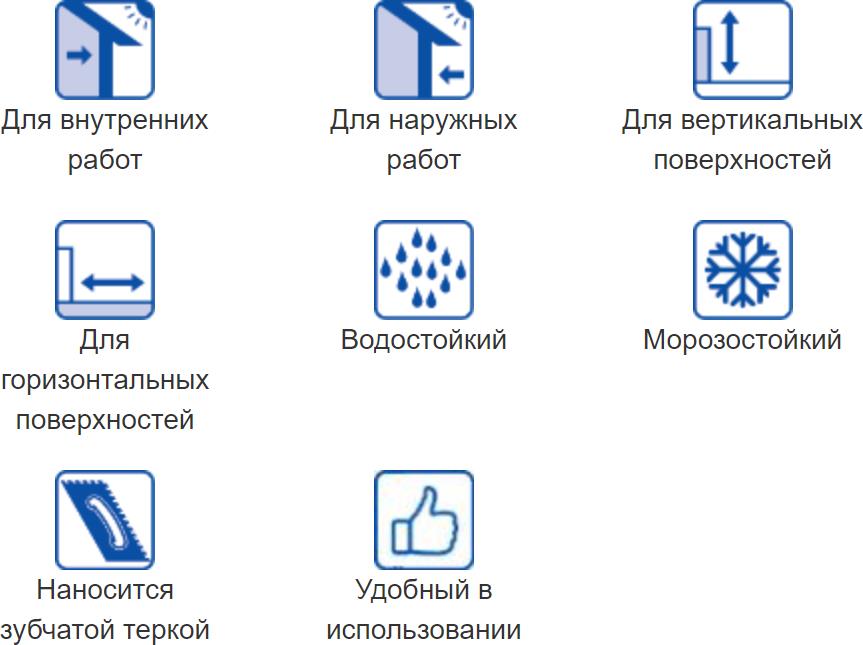 | Наружное применение, Внутреннее применение, Теплый пол, Бассейн, Полы, Стены | |