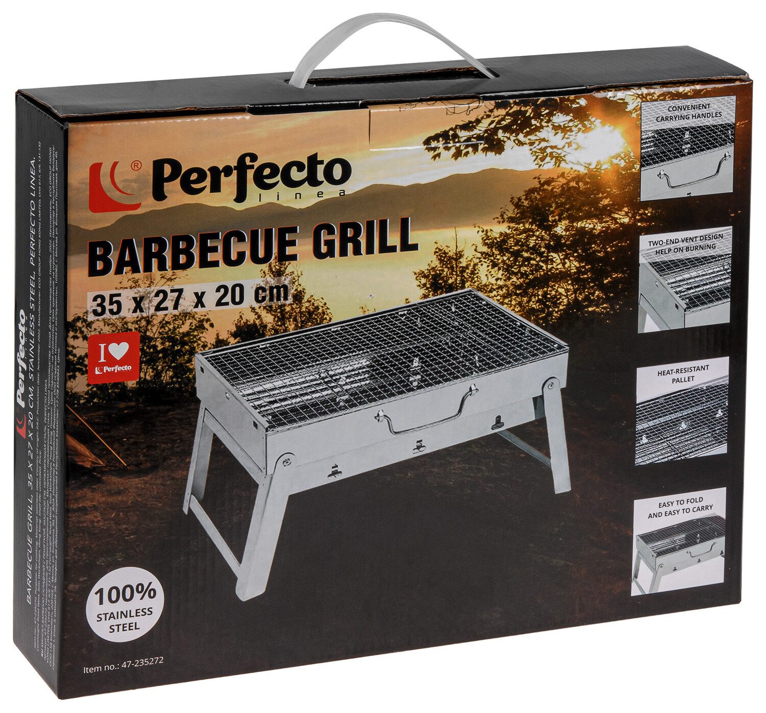 Мангал-барбекю PERFECTO LINEA 35х27х20 см (47-235272) выполнен из нержавеющей стали толщиной 0,4 мм, благодаря чему компактный мангал является долговечным и практичным. По боковым частям имеются отверстия для поддува, способствующие равномерному прогоранию угля. Мангал переносной имеет 4 опорные точки, обеспечивающие устойчивость. Оптимальная толщина исключает деформацию металла от жара. Мангал-барбекю отличается простой конструкцией, что обеспечивает его быструю сборку и комфортную эксплуатацию: