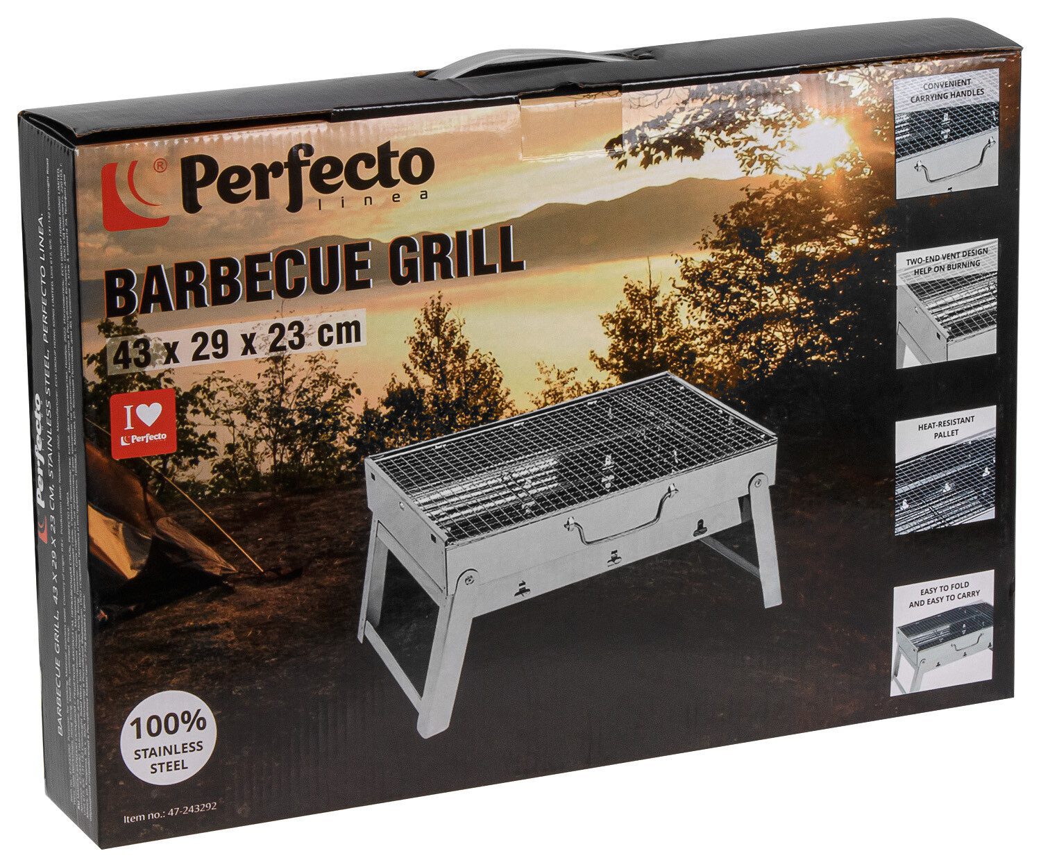 Мангал-барбекю PERFECTO LINEA 43х29х23 см (47-243292) выполнен из нержавеющей стали толщиной 0,5 мм, благодаря чему компактный мангал является долговечным и практичным. По боковым частям имеются отверстия для поддува, способствующие равномерному прогоранию угля. Мангал переносной имеет 4 опорные точки, обеспечивающие устойчивость. Оптимальная толщина исключает деформацию металла от жара. Мангал-барбекю отличается простой конструкцией, что обеспечивает его быструю сборку и комфортную эксплуатацию: