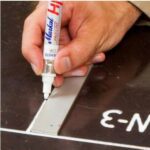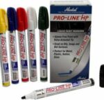 Маркер перманентный на основе жидкой краски MARKAL Pro-Line HP черный (96963) предназначен для жирных поверхностей, растворяет масленую пленку и отлично ложиться на гладкие и шероховатые поверхности. Непрозрачные надписи устойчивы к выцветанию и механическому износу, а также не подвержены воздействию кислот, растворителей, масел и других агрессивных веществ. Металлический корпус маркера и двухсторонний заменяемый войлочный наконечник позволяют использовать маркер в промышленных условиях длительное время. Маркер Pro-Line HP может использоваться как универсальный, например при нанесении меток на металл, стекло, дерево, бетон и пластик. Температура нанесения: -46 °C…+66 °C. Максимальная температура поверхности: +100 ° C. Время полного высыхания: 5-10 минут. Толщина линии: 2-4 мм.