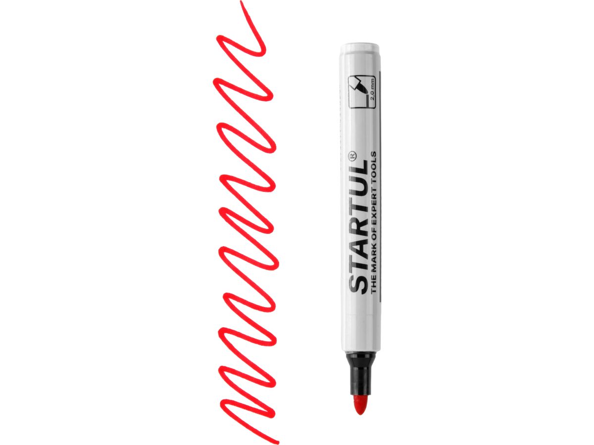 Маркер перманентный фетровый STARTUL Profi красный (ST4340-03) – для нанесения надписей и маркировки на различных материалах – дерево, металл, стекло, керамика, гипс, резина, кожа, ткань, картон, пластик.