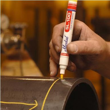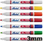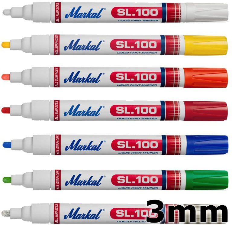 Маркер перманентный на основе жидкой краски MARKAL SL100 черный (31240620) – универсальный маркер с жидкой быстросохнущей краской без ксилола. Предназначен практически для любой поверхности. Маркер с невыраженным запахом обеспечивает устойчивую маркировку к температурным колебаниям и УФ-излучению. Ударопрочный пластиковый корпус и двухсторонний заменяемый войлочный наконечник позволяют использовать маркер в промышленный условиях длительное время. Температура нанесения: -46 °C…+66 °C. Максимальная температура поверхности: +100 ° С. Время полного высыхания: 5-10 минут. Толщина линии: 2-4 мм.
