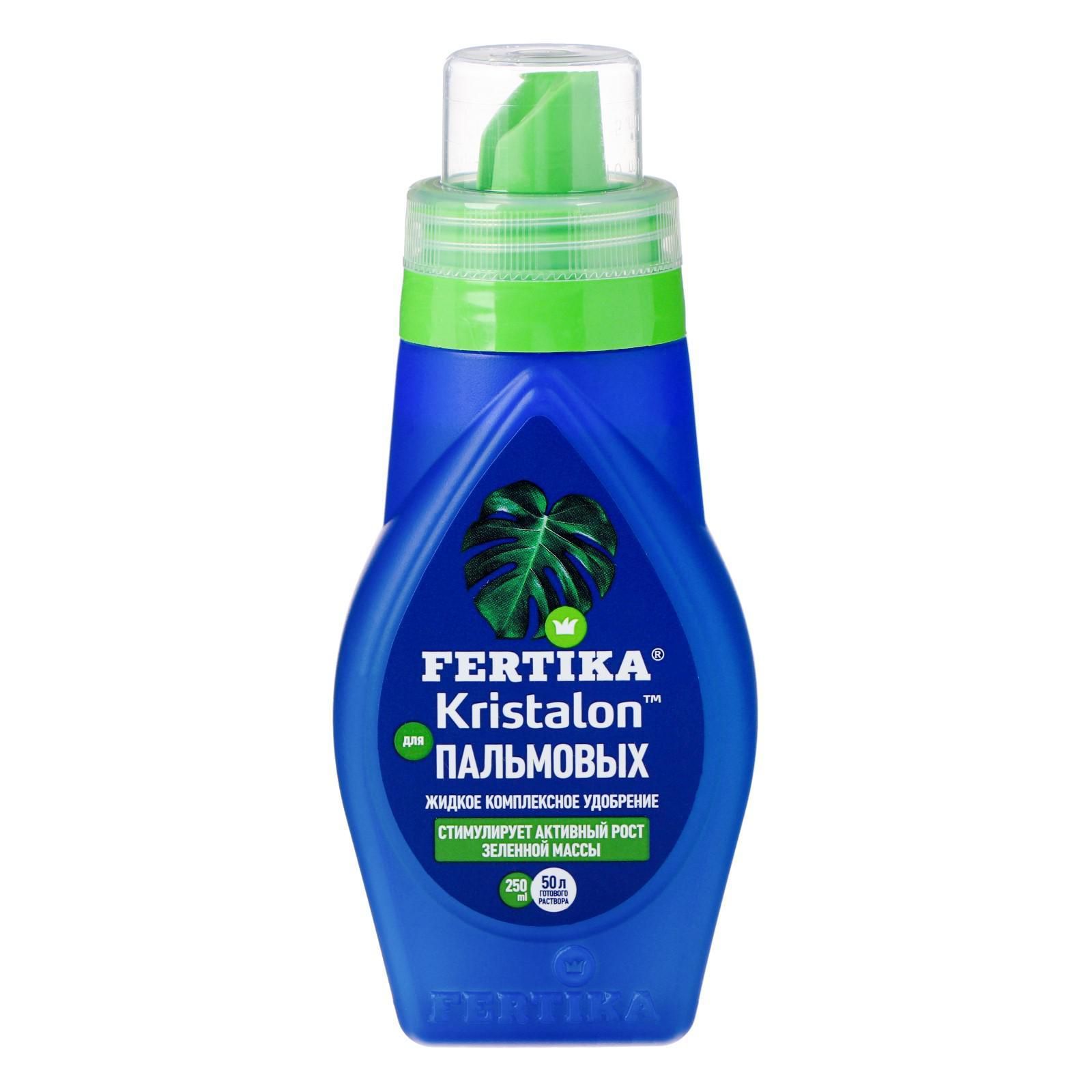 Удобрение минеральное FERTIKA Кристалон для пальмовых 250 мл для подкормки всех видов фикусов, пальм, драцен, юкк. Повышает интенсивность окраски листьев, обеспечивает растениям высокий декоративный внешний вид. Продлевает срок службы грунта горшечных культур.