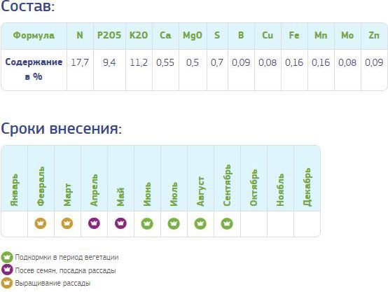 В период вегетации: для подкормки растений во время вегетации удобрение равномерно распределяют по поверхности почвы и аккуратно заделывают. После этого растения обильно поливают. Необходимо следить, чтобы гранулы не попадали на растения. Периодичность подкормок – 1-2 раза за период вегетации, норма подкормки – 1/2 от рекомендуемой.