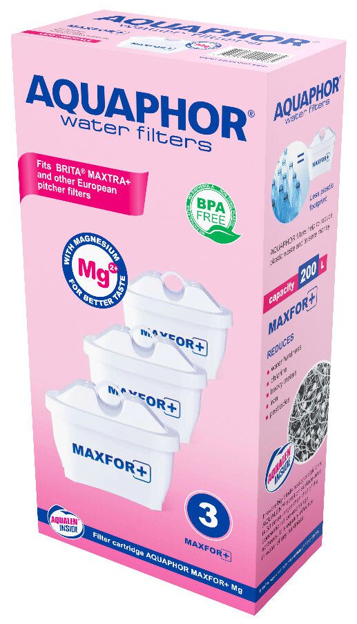 Картридж фильтрующий АКВАФОР Maxfor+ Mg обеспечивает универсальную защиту от самых распространенных примесей в водопроводной воде. Улучшается ее вкус и запах, снижается количество накипи. Картридж эффективно снижает содержание хлора, тяжелых металлов, железа, пестицидов, органических соединений, солей жесткости и других загрязнителей. Картридж содержит аквален — запатентованное ионообменное микроволокно, площадь поверхности которого в 33 раза больше, чем у традиционных ионообменных сорбентов. Фильтрующая матрица из угля и микроволокна очищает воду максимально эффективно. Аквален необратимо связывает ионы тяжелых металлов, в т.ч. свинца, железа, ртути. Maxfor+ Mg содержит природный минерал – перламутровый доломит, который сохраняет магний. Он легко усваивается и предотвращает заболевания сердца и сосудов. Форма Maxfor+ Mg универсальна, картридж подходит для фильтров-кувшинов других производителей из ЕС, Великобритании и США.