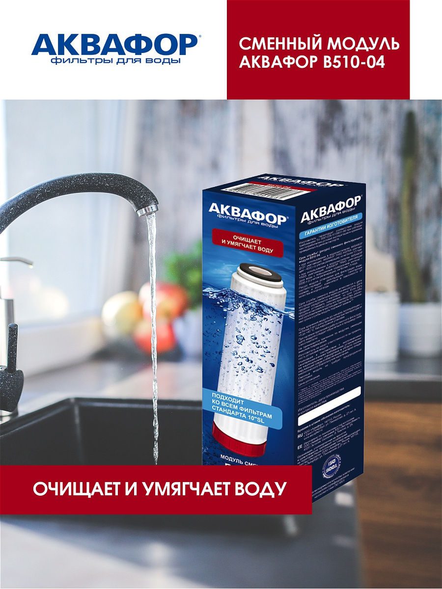 Картридж фильтрующий АКВАФОР В510-04 – сменный регенерируемый модуль для умягчения воды, устраняет избыток солей жесткости, содержит ионообменные смолу. Используется в стационарных системах очистки питьевой воды АКВАФОР Трио и ОСМО, а также в выпускавшихся ранее АКВАФОР Дуэт. Кроме того подходит к системам других марок, использующих 10-ти дюймовый стандарт корпуса.