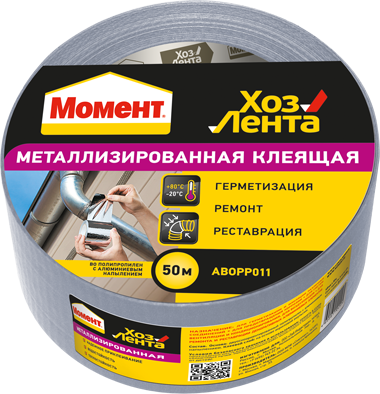 Лента клейкая МОМЕНТ Хозлента Металлизированная 48 мм х 50 м (1918973) предназначена для герметизации и изоляции различных соединений систем вентиляции, кондиционирования и воздуховодов, ремонта и реставрации декоративных алюминиевых элементов. Предотвращает коррозию.