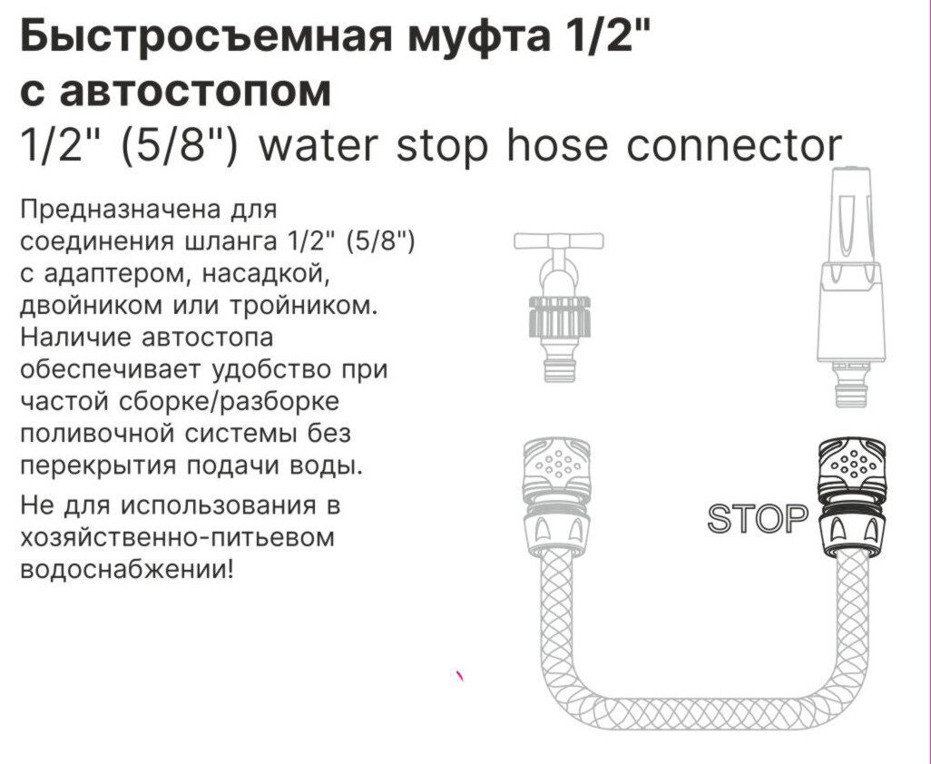 Муфта быстросъемная 1/2″ STARTUL Garden (ST6016-2-1/2) предназначена для соединения шланга 1/2″ с адаптером, насадкой, двойником или тройником. Материал: ABS пластик, термопластичная резина TPR. Soft touch, двухкомпонентная. Наличие автостопа обеспечивает удобство при частой сборке/разборке поливочной системы без перекрытия подачи воды.