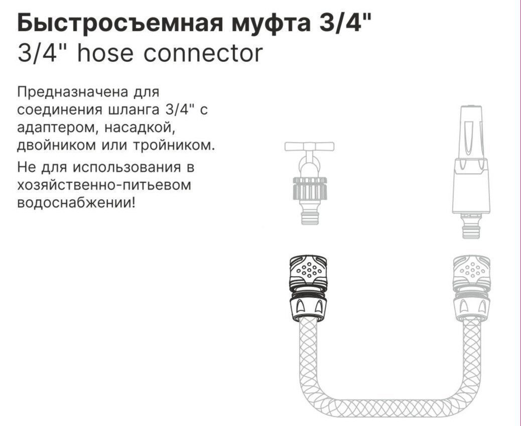 Муфта быстросъемная 3/4″ STARTUL Garden (ST6016-3-3/4) предназначена для соединения шланга 3/4″ с адаптером, насадкой, двойником или тройником. Материал: ABS пластик, термопластичная резина TPR. Soft touch, двухкомпонентная.
