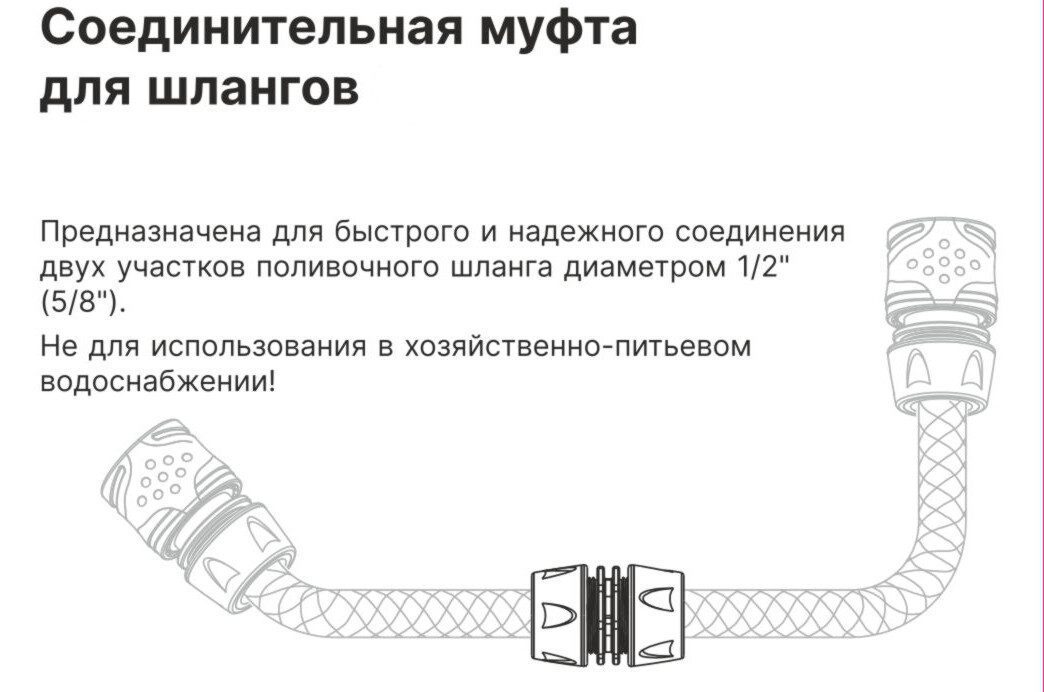 Муфта соединительная для шлангов 1/2″ STARTUL Garden (ST6016-6-1/2) предназначена для быстрого соединения двух участков поливочного шланга 1/2″. Материал: ABS пластик, термопластичная резина TPR. Soft touch, двухкомпонентная.