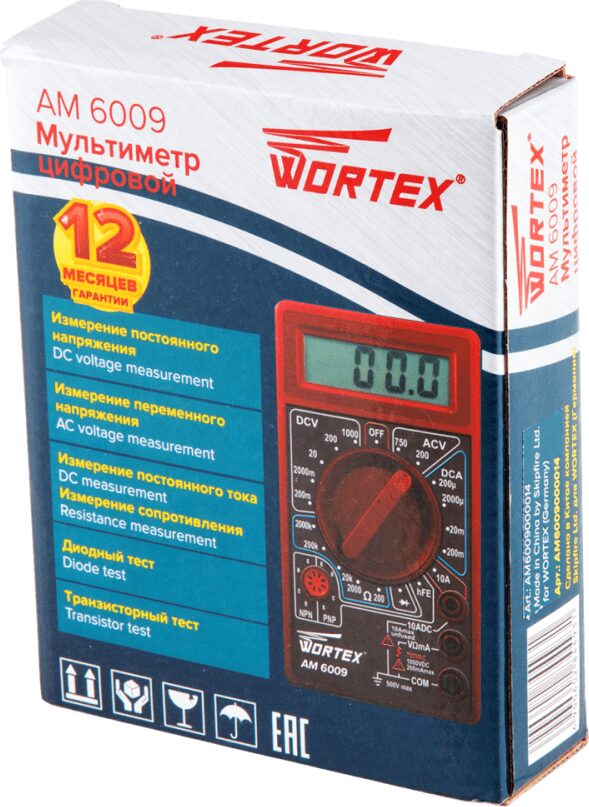Мультиметр цифровой WORTEX AM 6009 (AM6009000014) купить в сети строительных магазинов Мастак