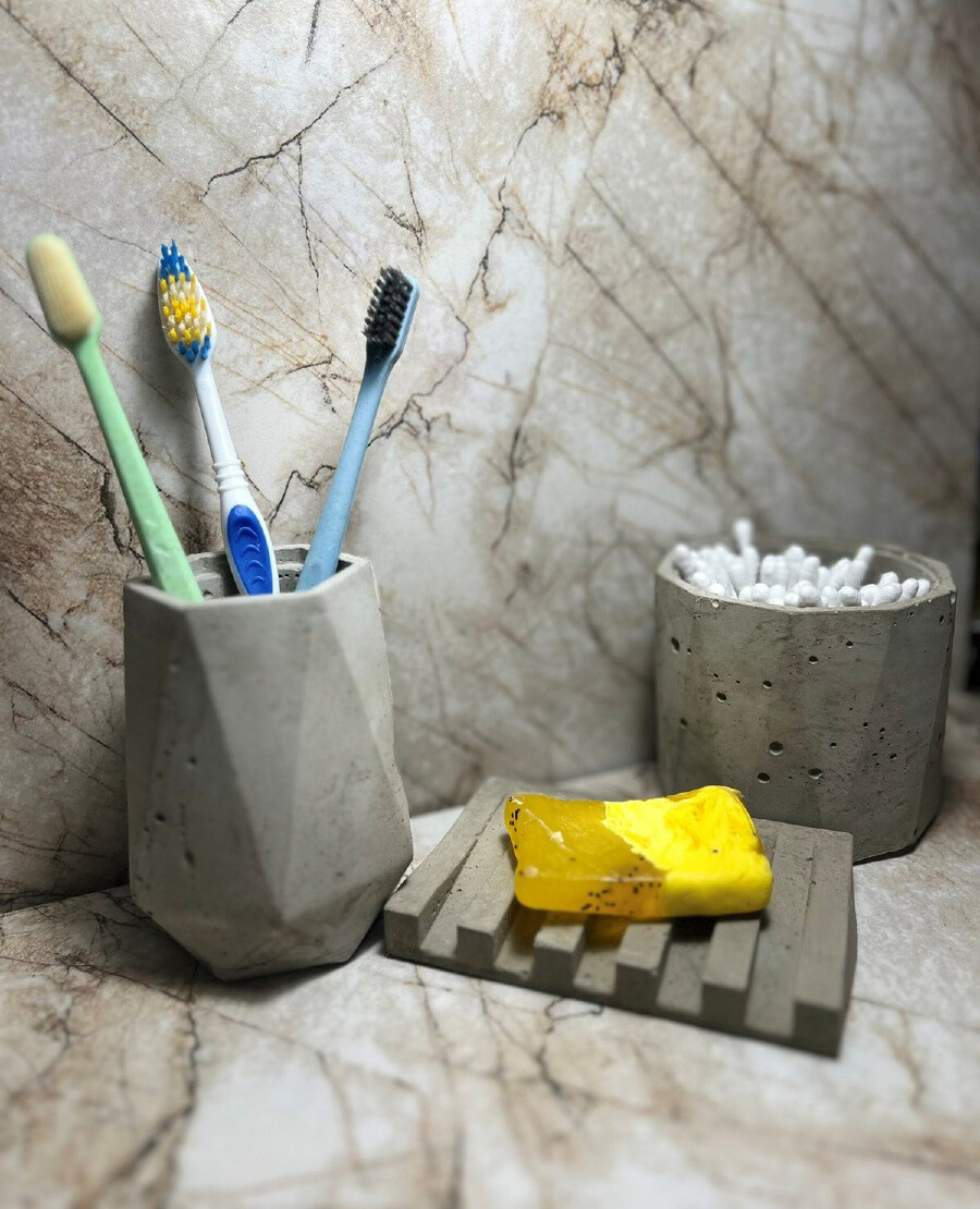 Мыльница бетонная 4ZEBRS обработана специальным средством, которое не боится воды. Скосы сделаны для того, чтобы вода стекала и мыло высыхало со всех сторон. Сделана в скандинавском стиле.