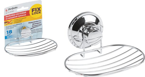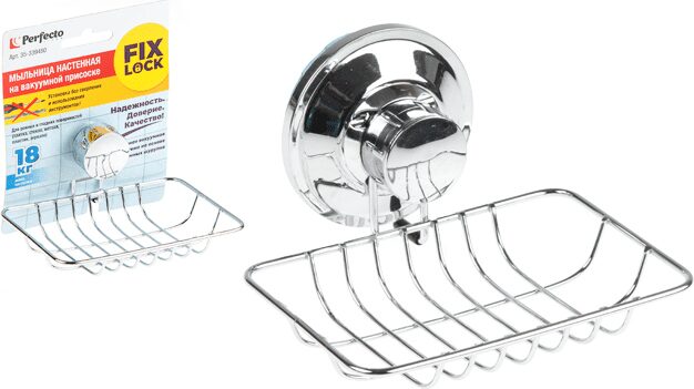 Мыльница PERFECTO LINEA Fix Lock (35-387480) быстро и легко устанавливается на любой воздухонепроницаемой поверхности. В случае необходимости легко перевесить в новое место. Подходит для любой ровной поверхности: плитка, стекло, металл, пластик, зеркало и др. Простая установка, 100% надежность крепления, мощная вакуумная присоска (до 60 bar), нет необходимости сверлить стены. Вакуумный шуруп полностью заменяет по своим свойствам стандартные крепления (дюбель, шуруп), устанавливается без инструментов. Хромированное покрытие обладает высокой прочностью и устойчивостью к коррозии и влажности. Вакуумная винтовая система удерживает до 18 кг. Размеры: 15,3 х11,8 х 5,9 см. Диаметр присоски: 73 мм. Материал: хромированная сталь, пластик, силикон.