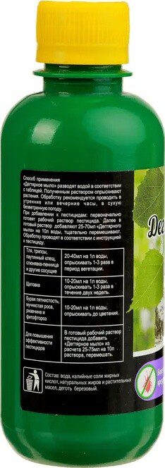 Дегтярное мыло применяется для садово-огородных и комнатных растений. Отпугивает вредителей, защищает от болезней. Дегтярное мыло разводят водой. Полученным раствором опрыскивают растения. Обработку рекомендуется проводить в утренние или вечерние часы в сухую безветренную погоду.