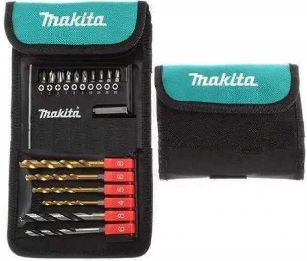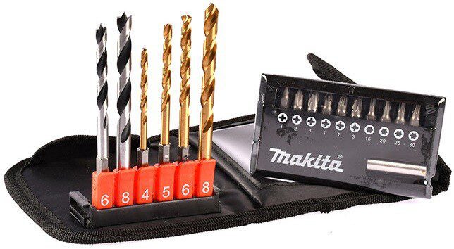 Набор оснастки MAKITA Basic 17 предметов (D-31762) предназначен для сетевых и аккумуляторных дрелей и шуруповертов. В наборе – сверла по дереву и металлу, биты и магнитный держатель. Удобный текстильный органайзер для хранения.