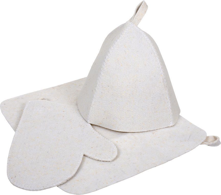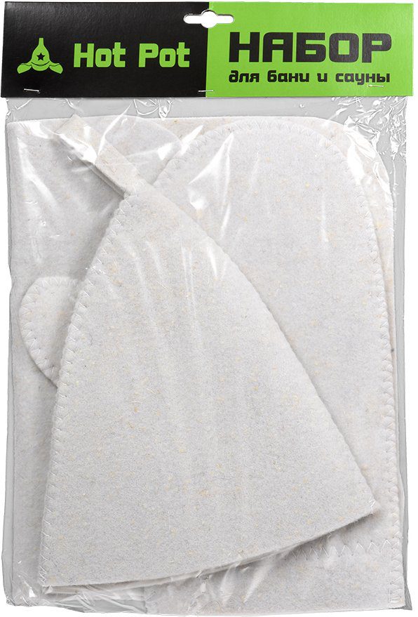 Главная Для бани Банный текстиль Набор для бани из 3-х предметов (шапка, коврик, рукавица), войлок, Hot Pot