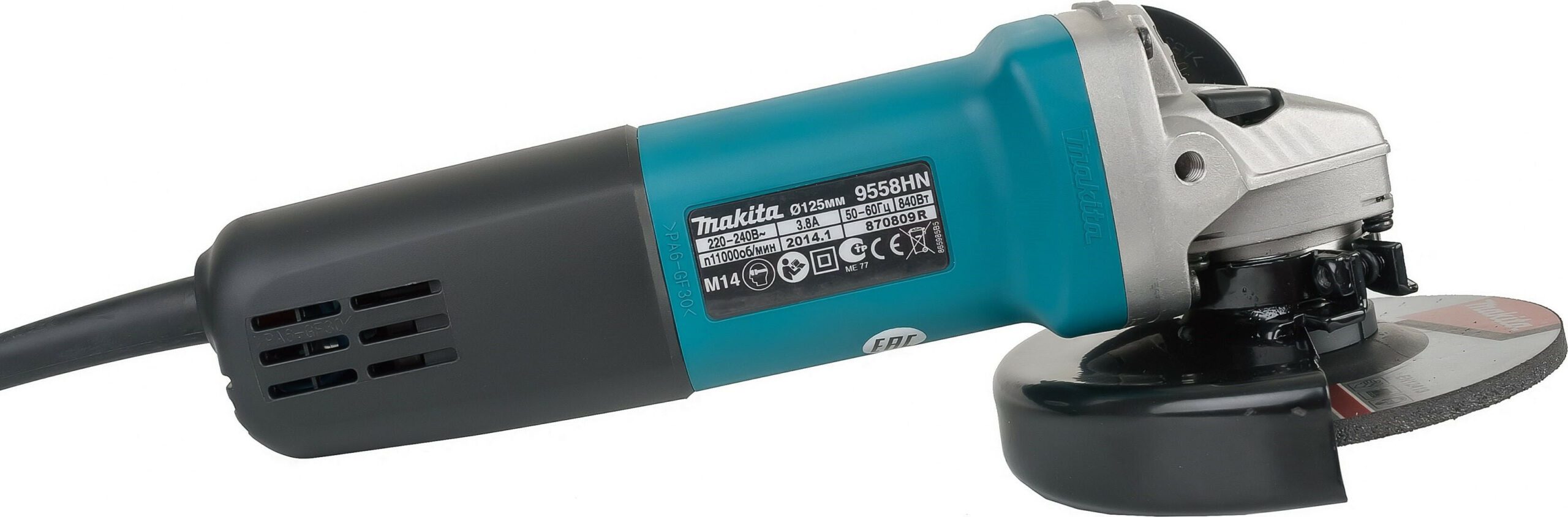 Шлифмашина угловая (болгарка) MAKITA 9558 — профессиональный инструмент для шлифовки поверхностей, отрезания заготовок, работ по бетону, кирпичной, каменной кладке, плитке и другим материалам. Мощный двигатель на 840 Вт позволяет использовать в условиях интенсивных нагрузок на строительной и производственной площадках. Усиленные шестерни. Высокая стойкость двигателя к повышенным температурам. Лабиринтная конструкция защищает все подшипники от пыли и строительного мусора. Маленький диаметр корпуса для удобства работы. Фиксатор шпинделя для быстрой замены оснастки.