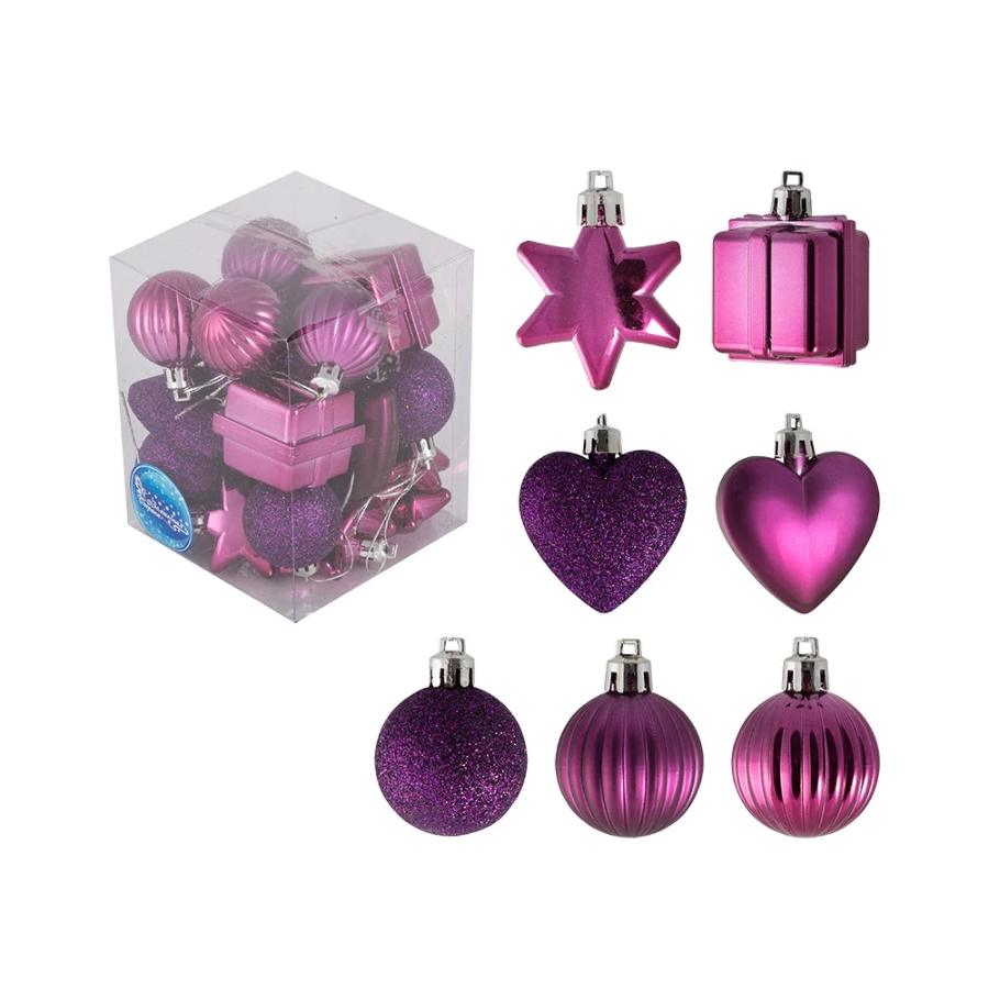 Набор елочных украшений “Ассорти” 24шт х 4см, материал: пластмасса, полиэстер, цвет сиреневый – применяется для украшения и декора, поможет создать волшебное настроение.