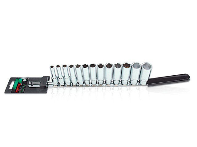 Набор головок 3/8″ TOPTUL включает в себя 13 глубоких шестигранных головок (7 – 21 мм) с динамическим профилем, изготовленных из хром ванадия. Применяются при работе с крепежом на высоких шпильках и резьбовыми деталями удлиненной формы. Рекомендуется для профессионального использования.