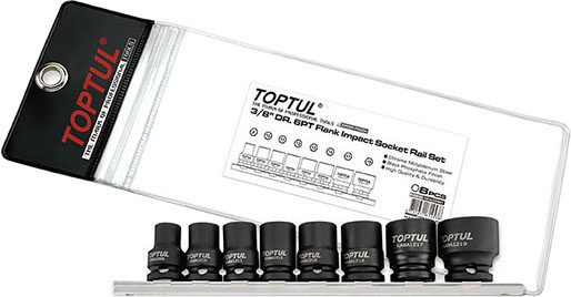 Набор головок ударных 3/8″ на подвесе TOPTUL включает в себя 8 шестигранных головок (8 – 19 мм), обработанных черным фосфатом. Применяется в качестве оснастки для гайковерта. Рекомендуется для профессионального использования.