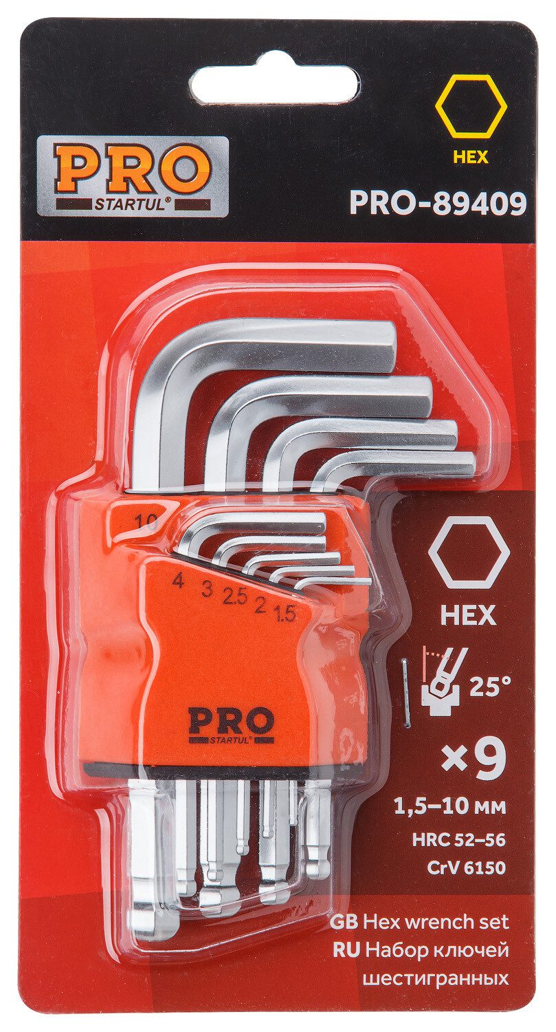 Главная Ручной инструмент Инструмент слесарный Ключи гаечные Набор ключей шестигр. 1,5-10мм 9шт коротк. с шар. PRO STARTUL (PRO-89409)