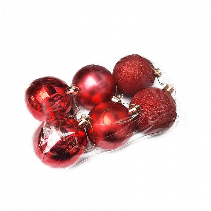 Набор новогодних шаров, 6 шт. СИЯЮЩИЕ КРАСНЫЕ МИКС, 6см, КЗЧ6Х6 – применяется для украшения и декора, поможет создать волшебное настроение.