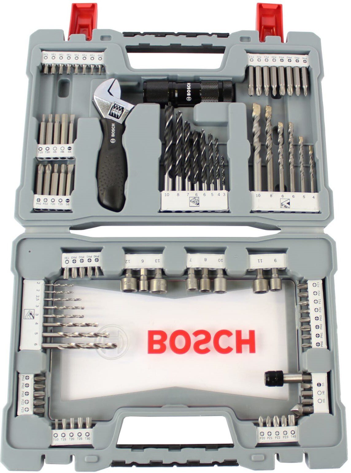 Набор оснастки BOSCH Premium Set 91 предмет (2608P00235) 1 светодиодный карманный фонарь, 1 регулируемый ключ, 6 сверл по бетону: O 4/5/6/6/8/10 мм, 8 сверл по металлу HSS-G: O 2/2/2.5/3/3/4/5/6 мм, 8 сверл по древесине: O 3/4/5/6/6/7/8/10 мм, 8 торцовых ключей: O 6/7/8/9/10/11/12/13 мм, 18 насадок-бит: L = 50 мм PH 0/1/2/2/3 PZ 0/1/2/2/3 S 5/6 Т 15/20/20/25 H 5/6, 39 насадок-бит: L = 25 мм PH 0/0/1/1/2/2/2/2/3/3/3 PZ 0/0/1/1/2/2/2/3/3/3 S 5 Т 10/10/10/15/15/15/20/20/20/25/25/25/30/30/40 H 5/6, 1 быстросменный универсальный магнитный держатель, 1 зенкер.