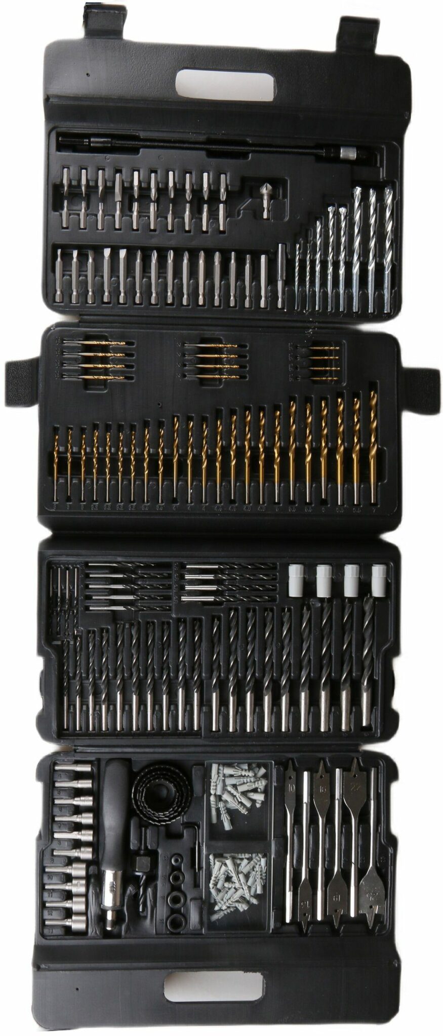 | Дополнительно в наборе | кольцевая пила – 4 штуки: 32, 38, 45, 54 мм, адаптер для кольцевой пилы, ограничитель для сверла – 4 штуки: 3, 6, 8, 10 мм, отвертка со сменными битами, гибкий вал для дрели, шестигранный ключ, дюбель распорный – 60 штук: 6мм, |