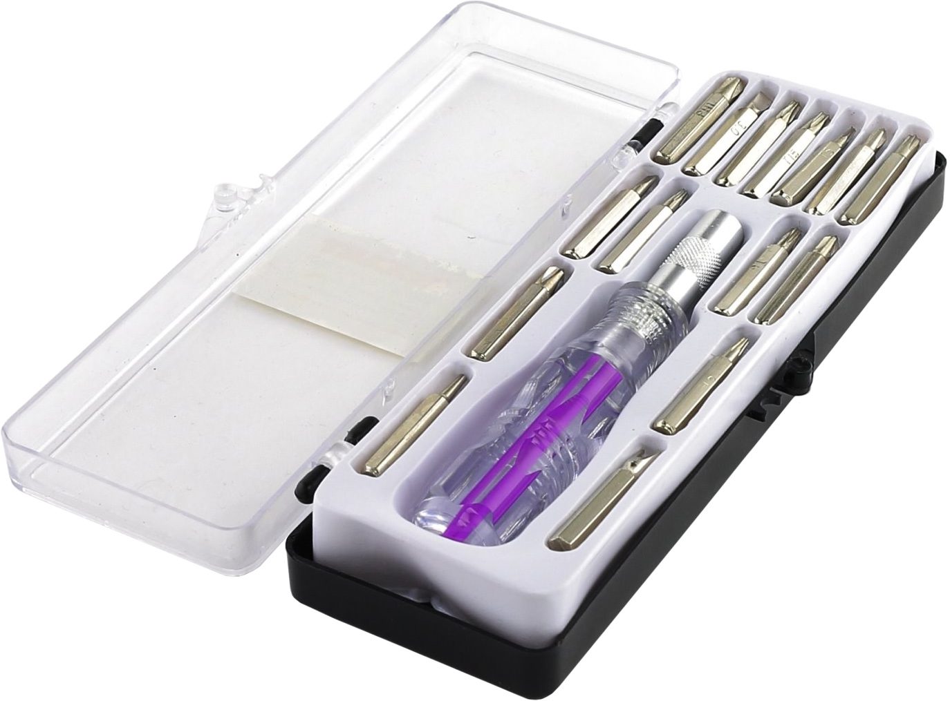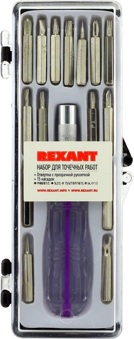 Отвертка с набором бит REXANT 16 предметов (12-4704) предназначен для выполнения прецизионных работ в электронике и электромеханике. Биты набора выполнены из хромованадиевой стали. Эргономичная двухкомпонентная рукоятка отвертки делает работу с инструментом легкой и удобной. Магнитный держатель обеспечивает быструю замену и надежную фиксацию насадок. Набор поставляется в пластиковом боксе и содержит 16 предметов.