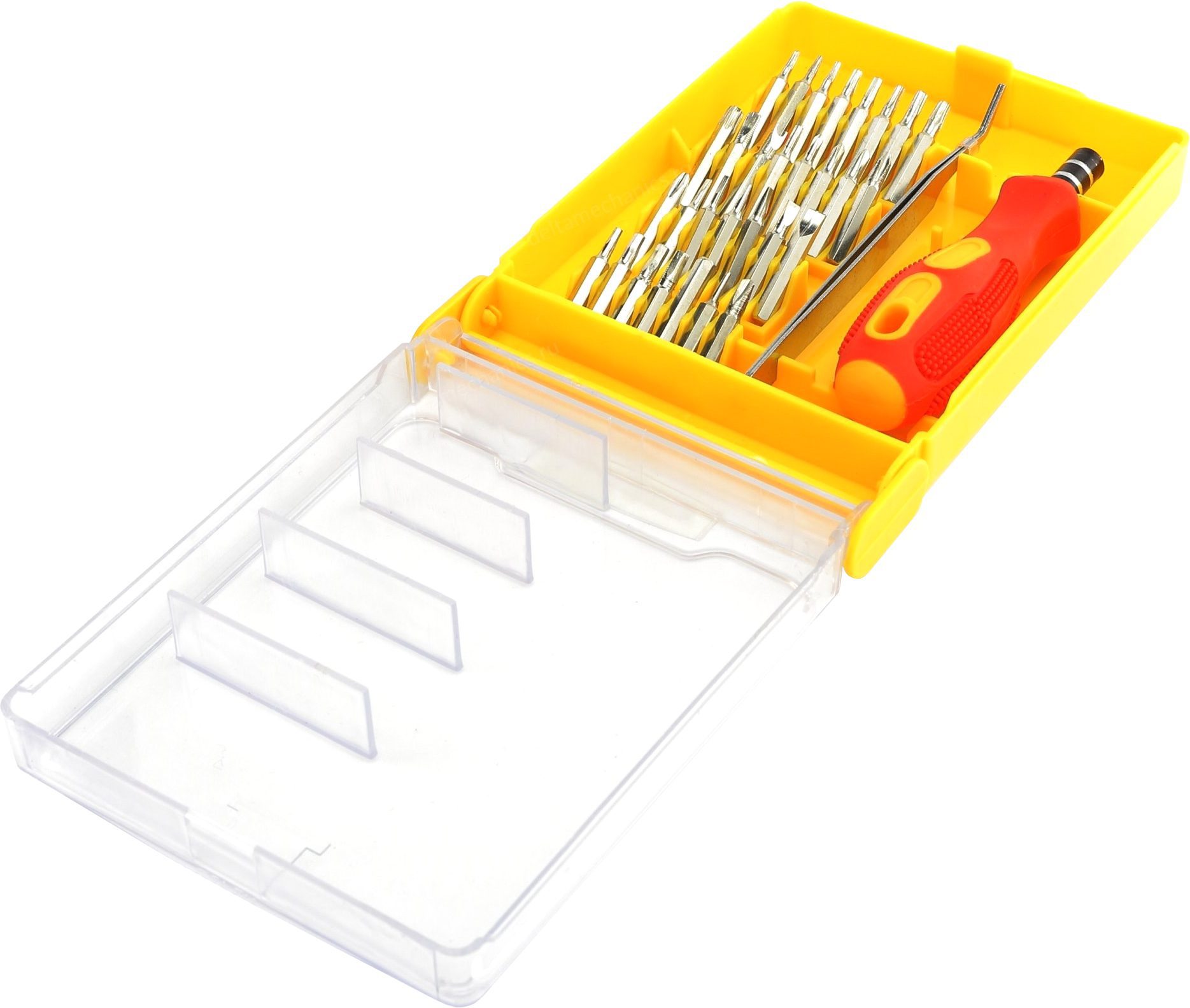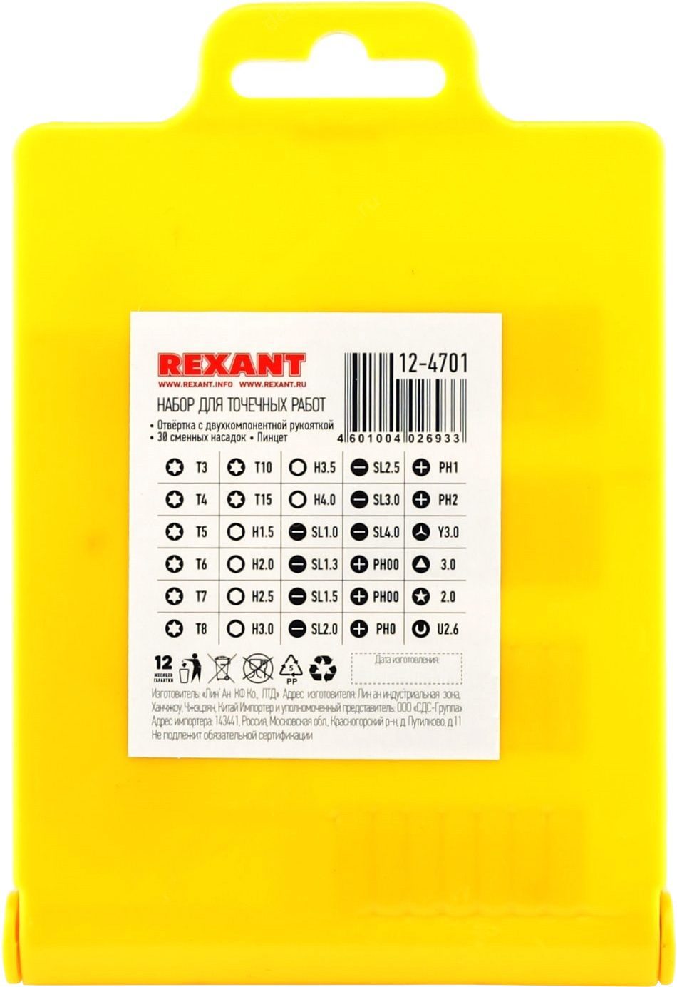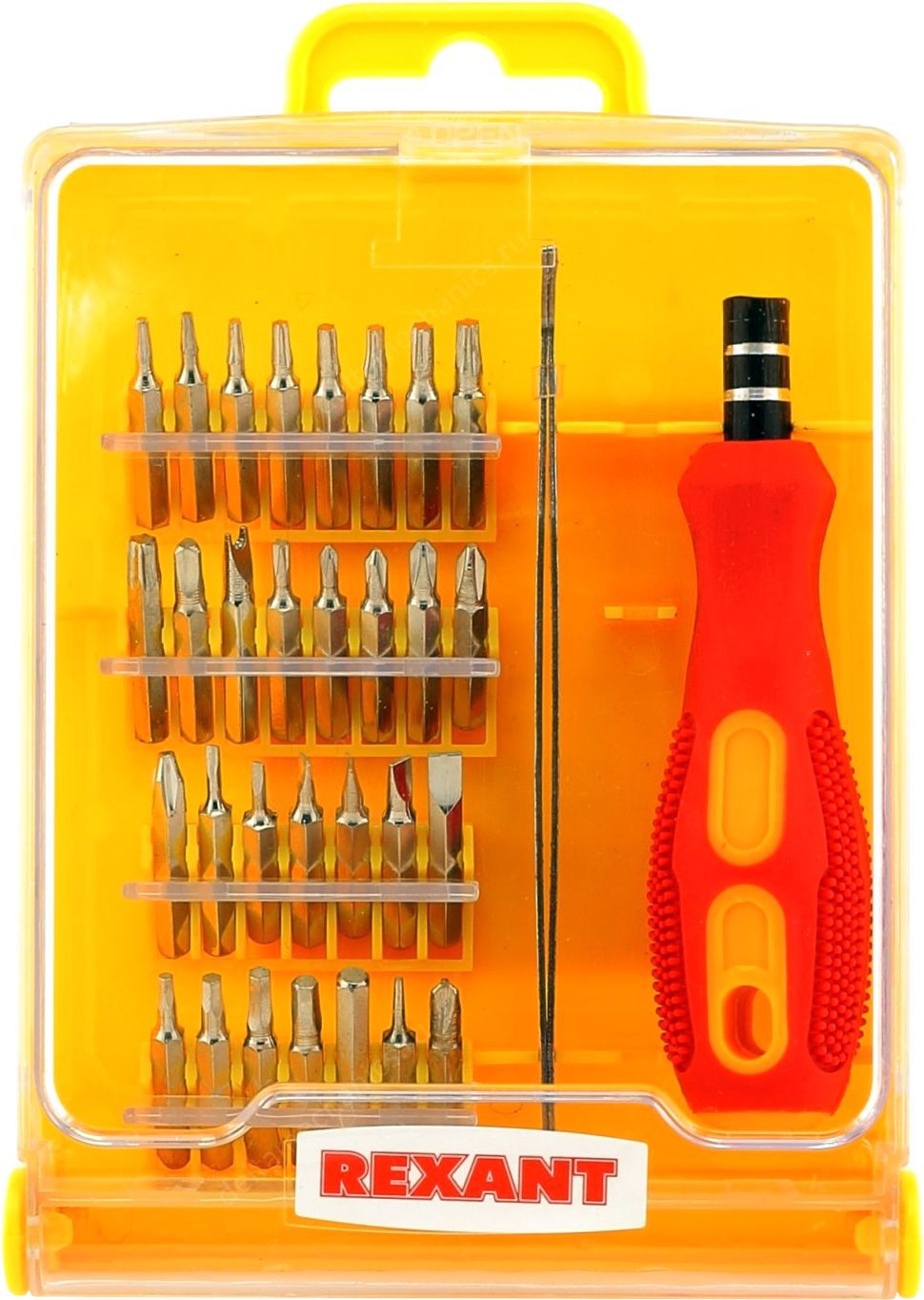 Отвертка с набором бит REXANT 32 предмета (12-4701) предназначен для выполнения прецизионных работ в электронике и электромеханике. Биты набора выполнены из хромованадиевой стали. Эргономичная двухкомпонентная рукоятка отвертки делает работу с инструментом легкой и удобной. Магнитный держатель обеспечивает быструю замену и надежную фиксацию насадок. Набор поставляется в пластиковом боксе и содержит 32 предмета.