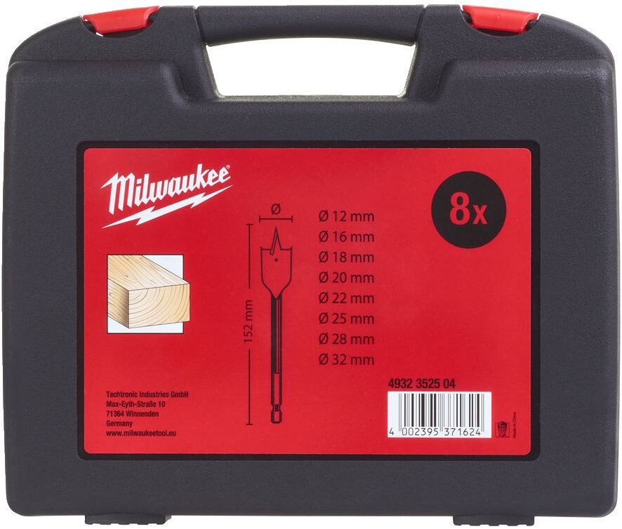 Набор сверл по дереву перьевых 8 штук MILWAUKEE (4932352504) купить в сети строительных магазинов Мастак