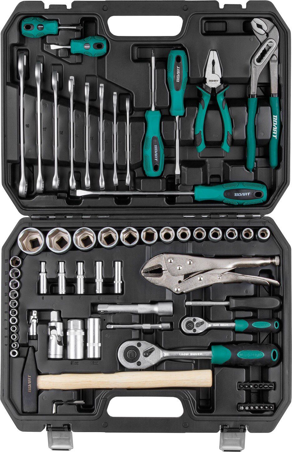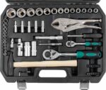 Набор инструментов 1/4″, 1/2″ 6 граней 72 предмета ВОЛАТ (18530-72) – многофункциональный набор предназначен для ремонта и обслуживания автомобиля, а также для выполнения других слесарных работ. Рабочие части изготовлены из инструментальной стали. Покрытие сатинированное. Профиль головок шестигранный. Кейс из прочного противоударного пластика, с металлическими замками.