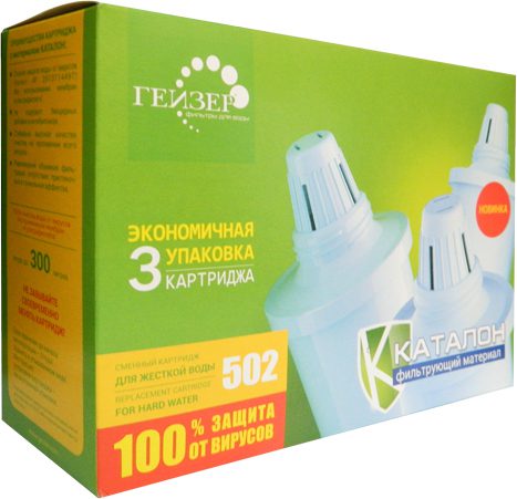 Картридж фильтрующий ГЕЙЗЕР 502 3 шт. применяется в фильтрах-кувшинах Гейзер для комплексной очистки и смягчения воды. Ресурс: 350 л. Производство: Россия.Сменные картриджи имеют одинаковые присоединительные размеры, взаимозаменяемы и могут устанавливаться в любой фильтр-кувшин Гейзер (а с использованием переходников — в кувшины других производителей).Картридж 502 для жесткой воды имеет пять степеней очистки.
