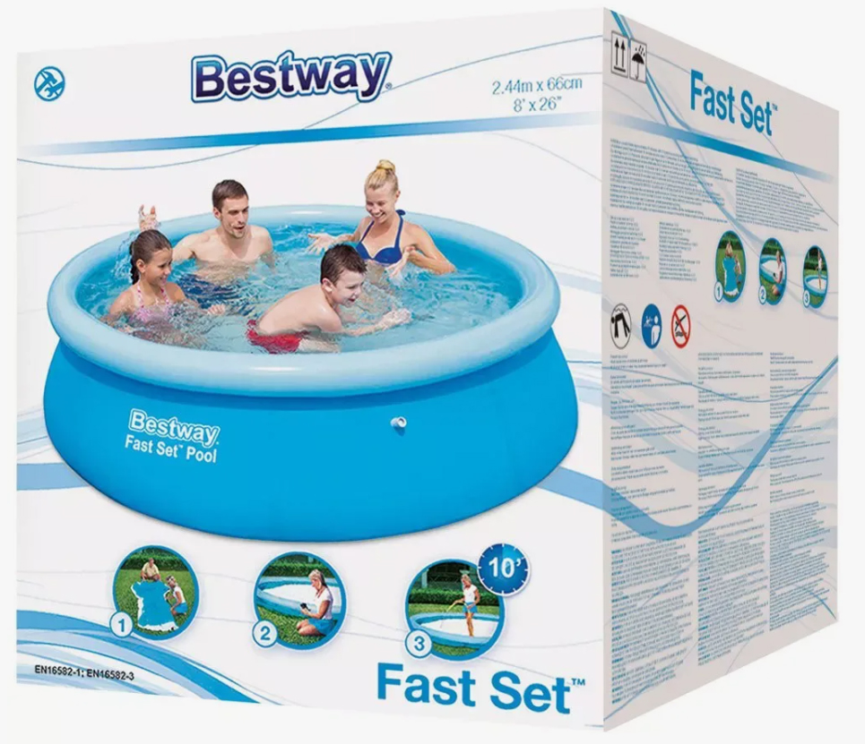 Бассейн BESTWAY Fast Set 57448 (244х61) – это идеальный вариант для купания и отдыха детей возрастом от 6 лет. Благодаря небольшим габаритам и маленькому весу его можно брать с собой на природу, дачу или море. Прочные боковые стенки этого бассейна изготовлены по технологии DuraPlusT. Это трехслойный материал армированный полиэфирной сеткой, заключенной между двумя слоями высококачественного ПВХ, что обеспечивает превосходную прочность и долговечность. Бассейн оснащен фитингами для подключения фильтрующей установки FlowclearT. В комплекте с бассейном поставляется заплата, с помощью которой можно самостоятельно устранить небольшие механические повреждения.