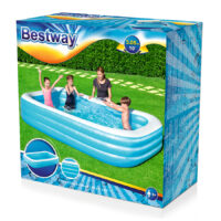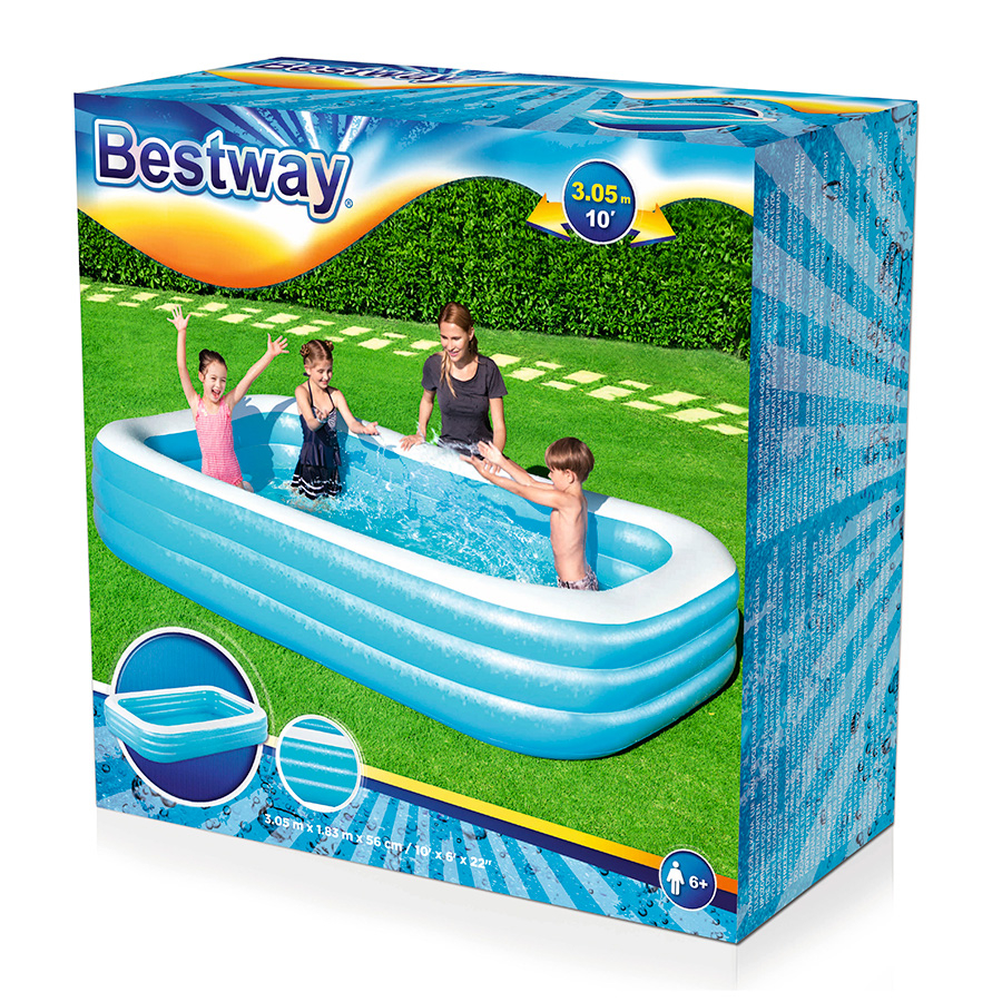 Бассейн INTEX 58484 (305x183x56) можно назвать семейным бассейном, ведь купаться в нем можно сразу и детям, и взрослым. Габариты достаточны, чтобы родители могли с комфортом разместиться внутри, а не очень большая глубина позволяет детям безопасно плескаться в летней воде. Материал стенок очень плотный, толщина винила 0,38 мм. Толщина бортиков позволит прислоняться для комфортного расположения.